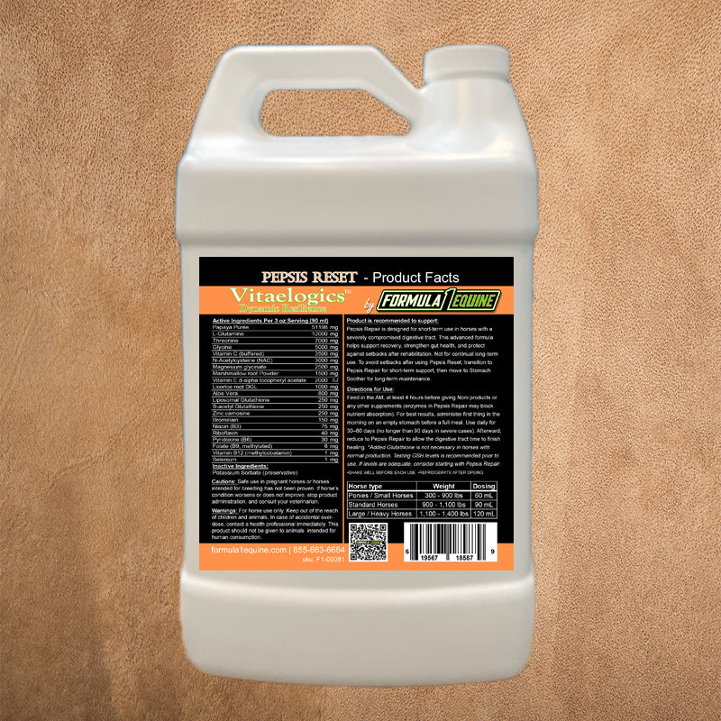 Pepsis Reset acts as the first step in restoring the digestive foundation — preparing the horse for true recovery through Pepsis Repair and long-term maintenance with Stomach Soother.